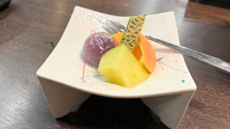 デザートは葛饅頭とフルーツ。