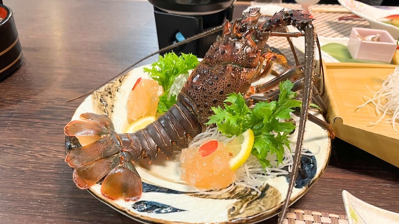 - 伊勢海老をお造り・焼き・味噌汁で堪能