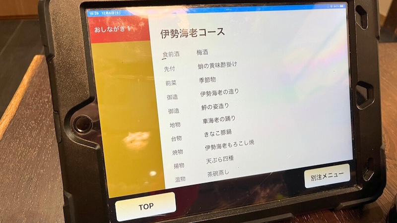 いただくのは一番人気の「伊勢海老コース」です。