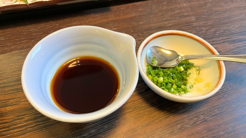 甘めの醤油と薬味をかけていただきます。