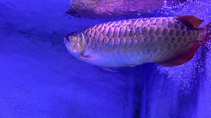 建物に入ってすぐの水槽には、古代魚アロワナやピラルクなど大型の魚が展示されています。