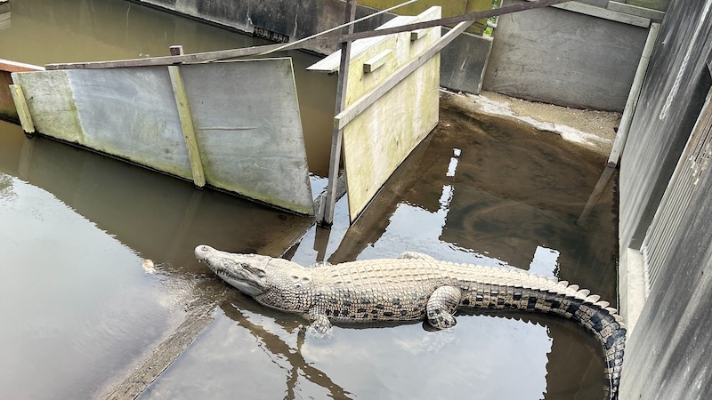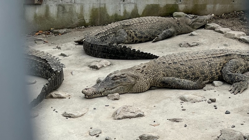 日中は寝ている個体も多く、全然動かないワニはまるで置物のようでした。