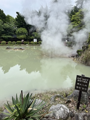 静かに蒸気をあげる地獄と、静かな庭園がマッチしており、他の地獄とは異なる雰囲気の地獄です。(国指定名勝にも選ばれています。)