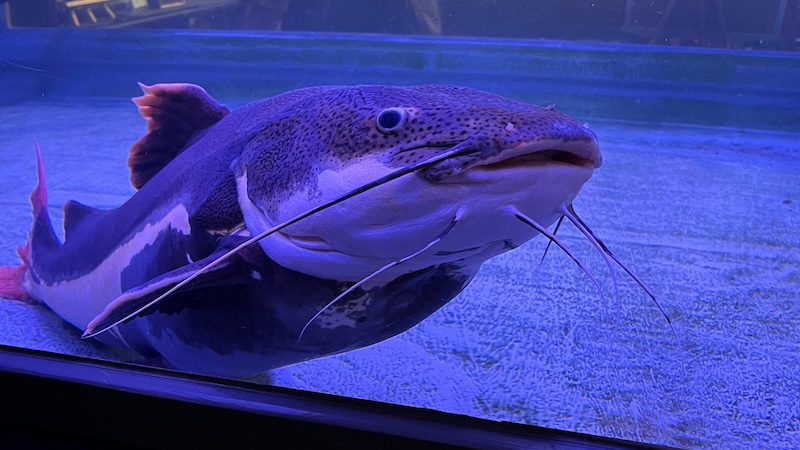 レッドテールキャットフィッシュ(ナマズ)は、キョトンとした表情に見えるかわいらしいお顔。