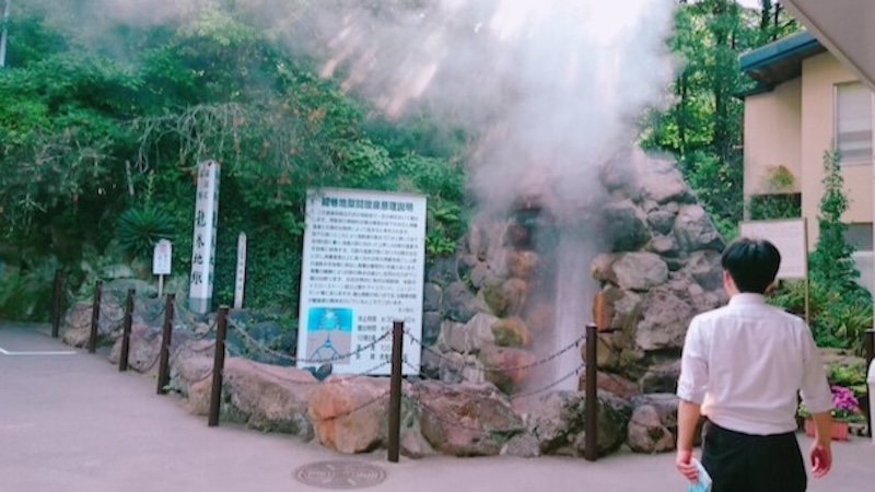 こちらも国指定名勝に選ばれており、30〜40分ごとに噴き上がる熱水は、屋根がなければ約30mほどの高さまで噴き出す力があるそうです。