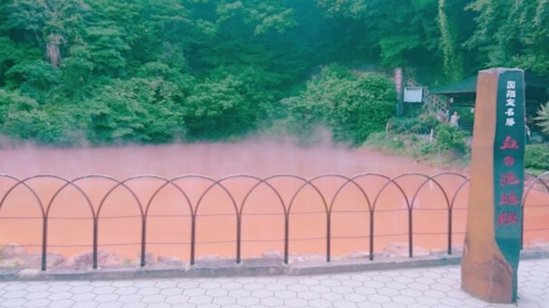 国指定名勝に選ばれているこちらの地獄は、酸化鉄・酸化マグネシウムなどを含んだ赤い熱泥で池一面が赤く染まっているんだとか。