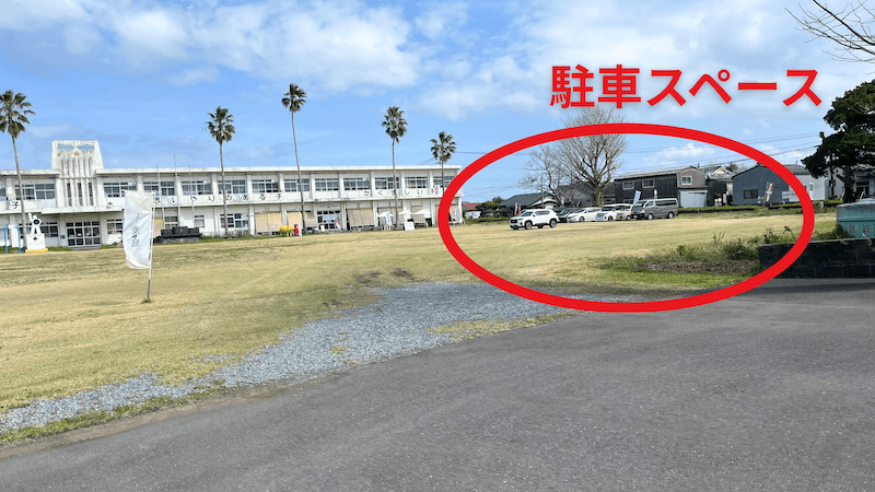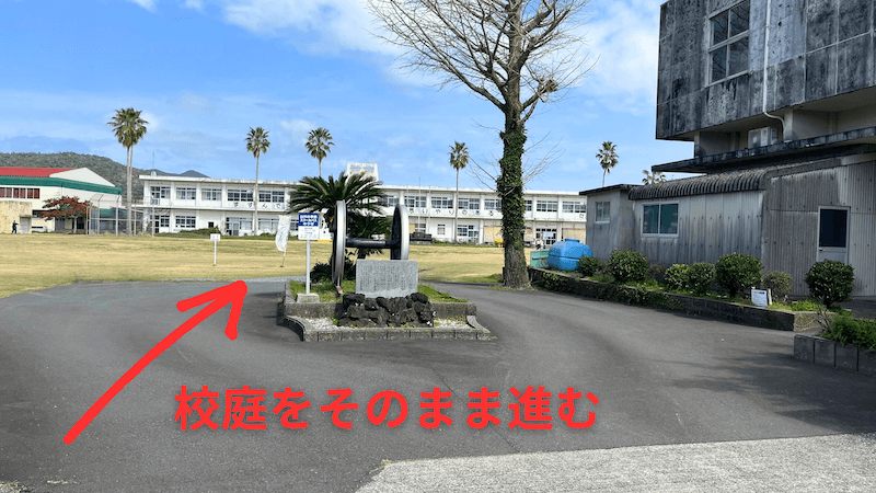 車の場合も、芝生になっている校庭をそのまま進んでOK。