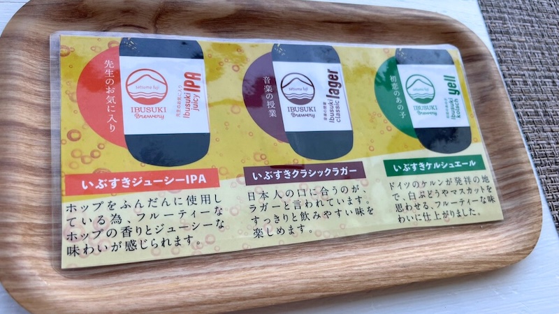 販売されているビールは、店内で飲める「いぶすきジューシーIPA」、「いぶすきクラシックラガー」、「いぶすきケルシュエール」の3種類。