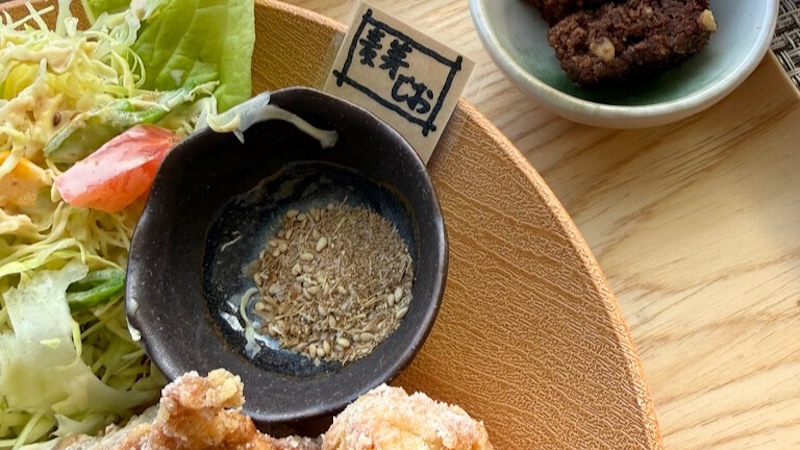 唐揚げに添えられているのは「麦芽しお」。