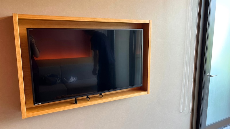 ソファー前の壁には、壁掛けタイプのテレビがあります。(スマートテレビ対応)