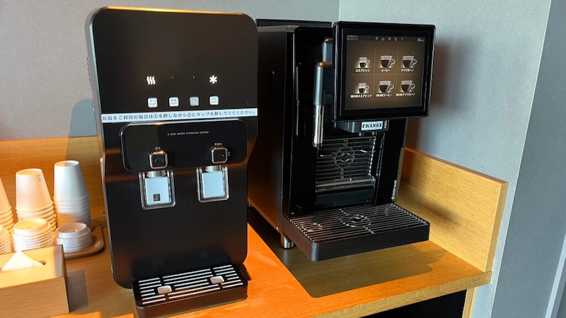 こちらにはコーヒーなどの飲み物が用意されており、宿泊中は自由にいただくことができます。
