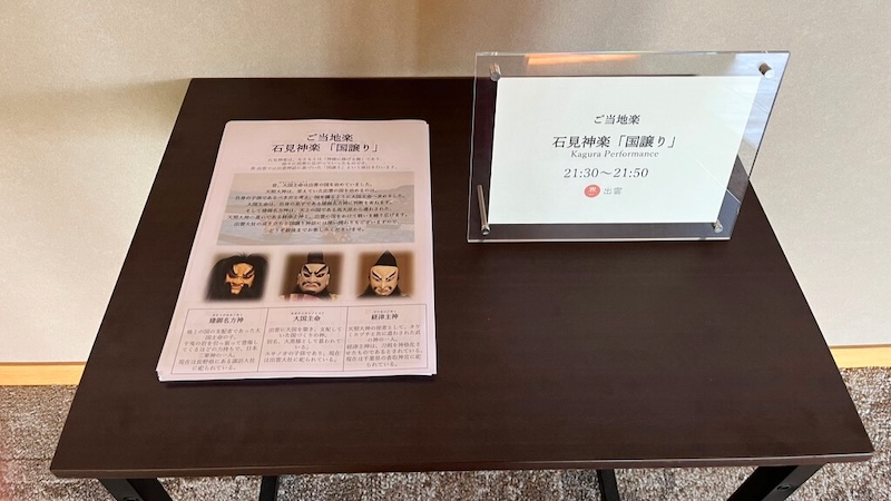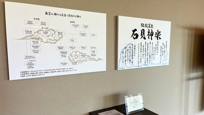 ロビーには演目紹介のチラシや出雲の神々について書かれた掲示もあるため、観覧する前に目を通しておくと、より楽しめそう。