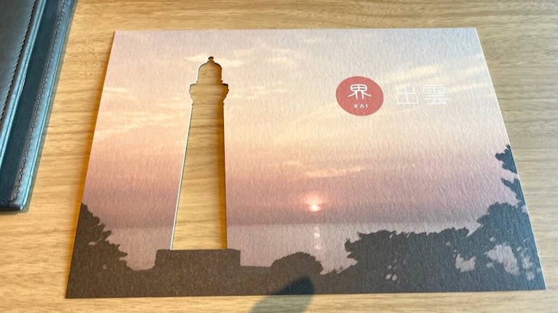こちらはチェックインの際に、スタッフの方からいただいた夕景を切り取ったカード。