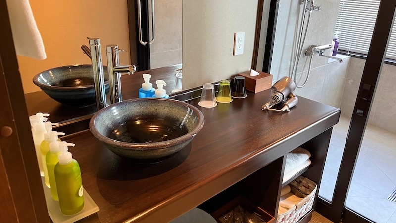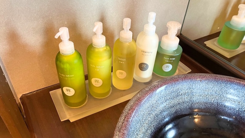 備品・アメニティ (客室にあるもの) | ・湯沸かしケトル、茶器、ミニバー ・作務衣、足袋ソックス ・風呂敷 ・和漢生薬成分を用いたアメニティ(シャンプー、コンディショナー、ボディソープ、 クレンジング、洗顔料、化粧水、乳液、ボディローション、ハンドソープ) ・歯磨きセット/綿棒・コットン・ヘアゴム/ブラシ ・タオル ・ドライヤー ・テレビ、冷蔵庫 ・金庫 |