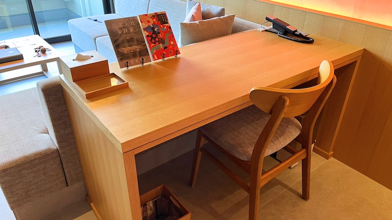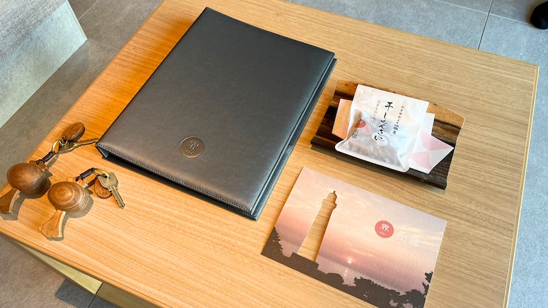 ソファーの前の机には、館内案内の冊子とウェルカムスイーツが置かれていました。