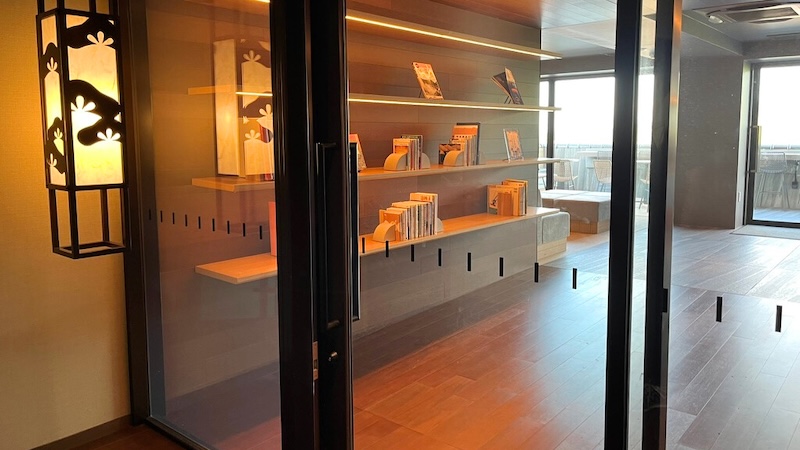 トラベルライブラリーは2階客室フロアの突き当たりに位置しています。