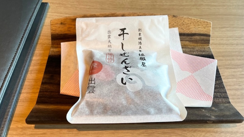 お茶菓子には地元の津山屋製菓が作る「ぷるり・出雲いちじく」が置いてありました。