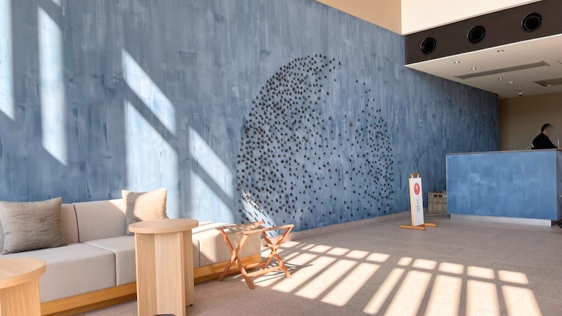 太陽をイメージしたアートがあしらわれ、時間帯によって表情が変わる