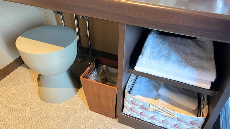 また客室の冷蔵庫内にあるお水がなくなった場合、こちらのウォーターサーバーで補充することが可能です。