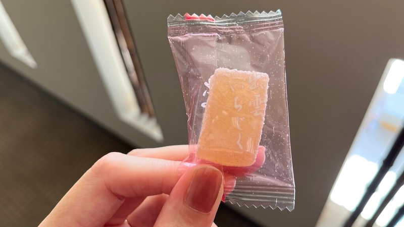 島根県産の蓬莱柿いちじくのペーストともち米粉、葛粉、寒天などを合わせたお菓子だそうです。