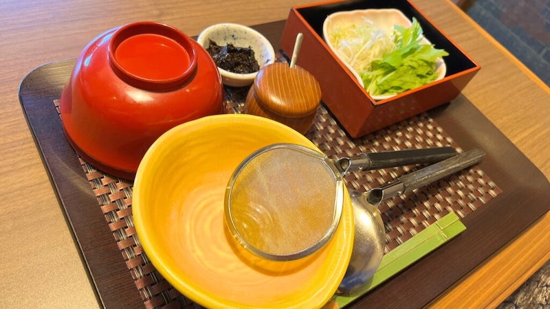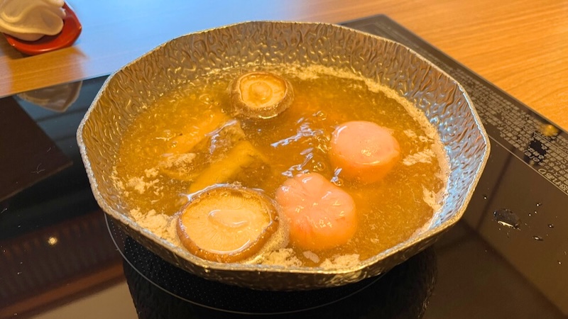 続いては汁物。担当スタッフの方が目の前で調理してくださいます。