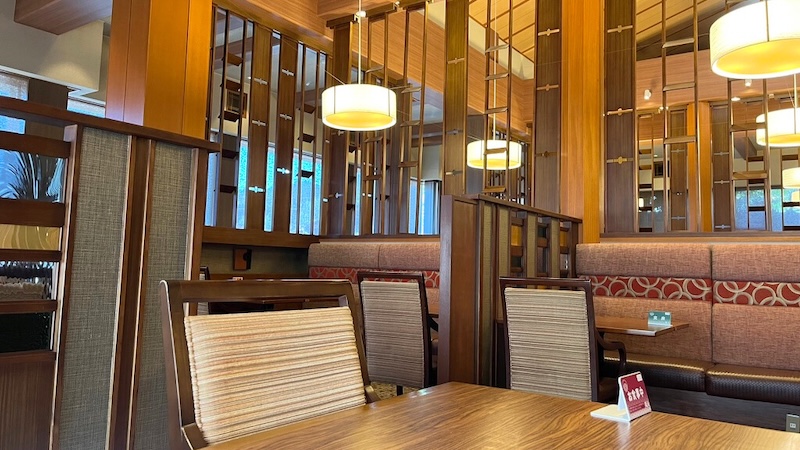 朝食会場は夕食とは異なる会場。オープンキッチンを備えたビュッフェスタイルの会場となっています。