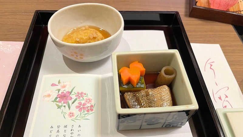 2品目:楽盛 前菜「かれい山椒焼き 味覚盛り込み」