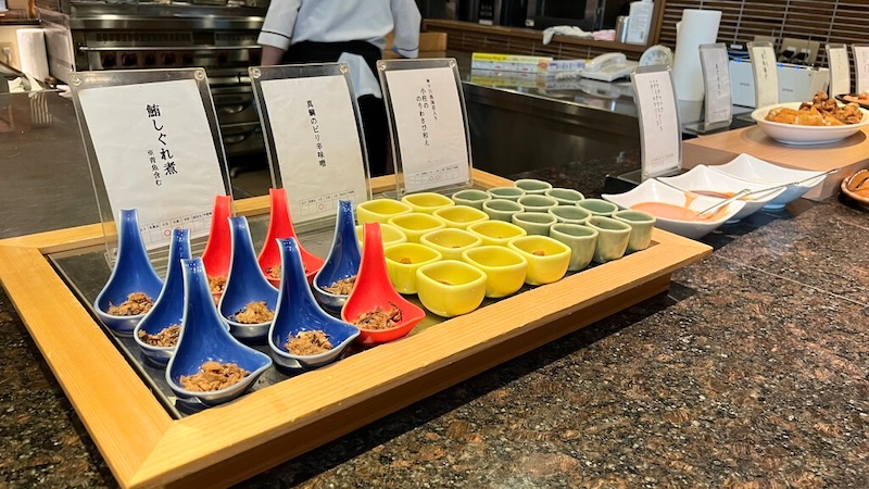 前日の夕食はコースの会席料理でしたが、朝食は肩肘張らず、自分の好きな料理を楽しめるスタイル。