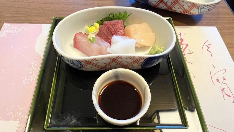 続いてはお造り。楕円型の器を開けると、分厚く切られた身が贅沢に並んでいます。